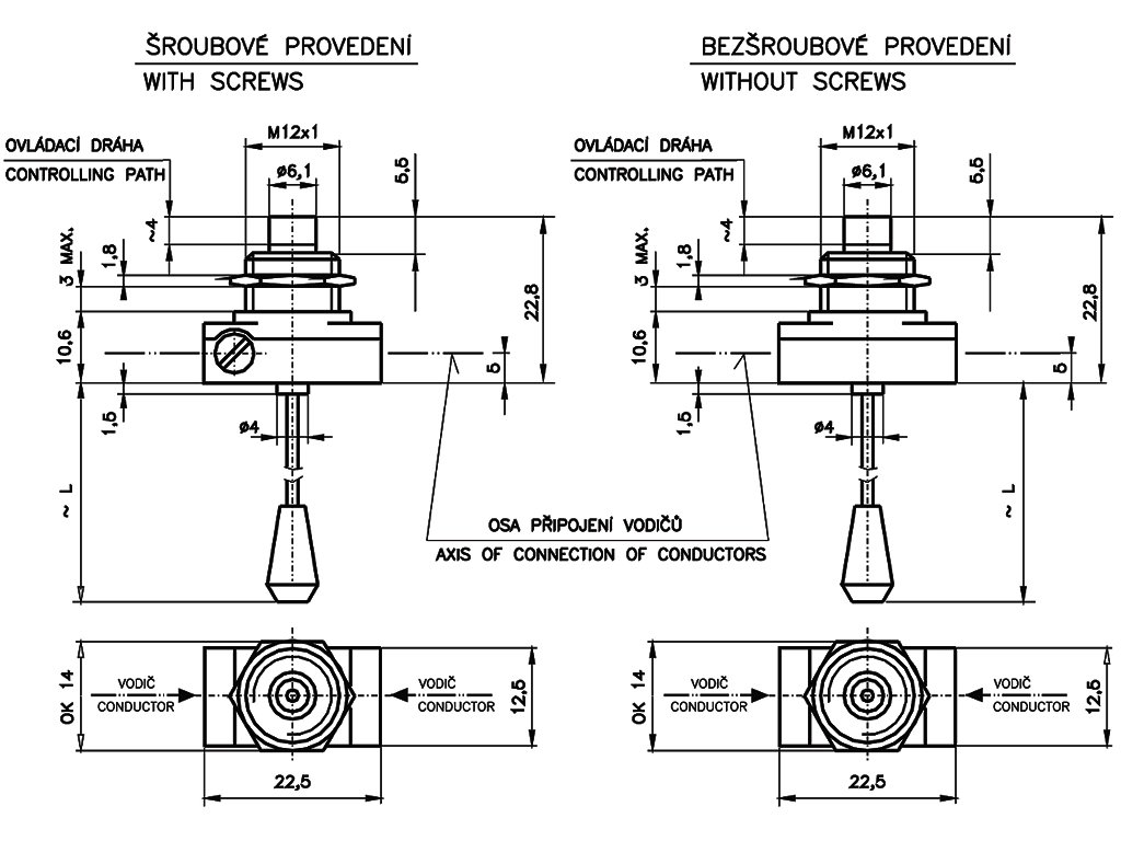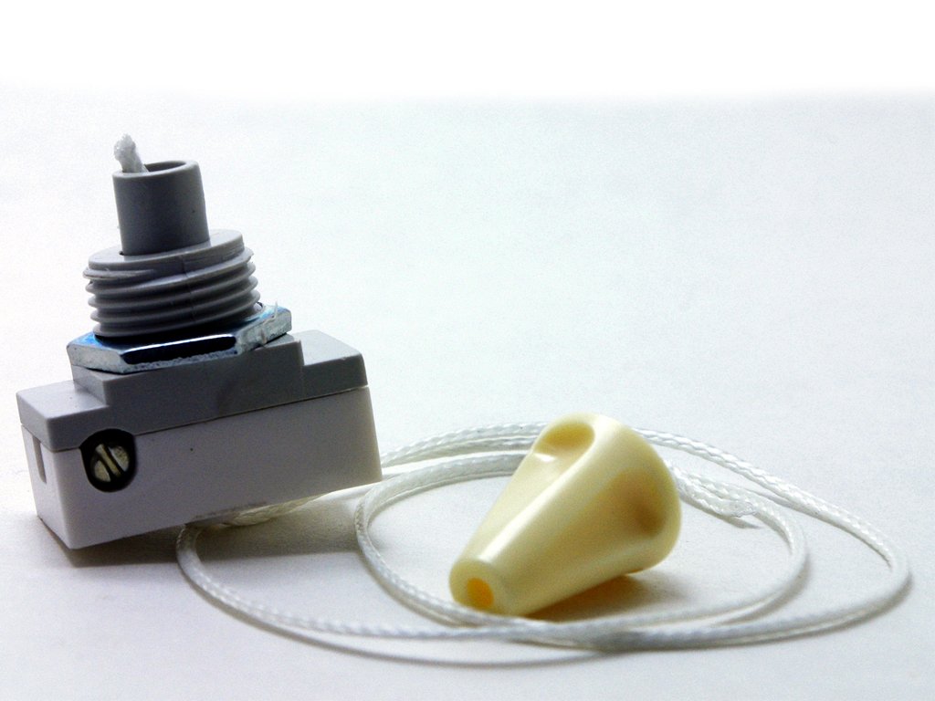 Spínač tahový; šroubové provedení; vestavný; SPST; 2 polohy; OFF-ON; 2A/250VAC; průměr mont. otvoru 12,2mm; šedý; šroubové svorky.