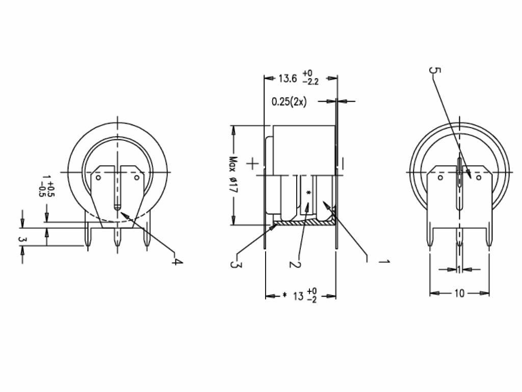 - Počet pinů: 3 piny (zdvojený pro +pól)