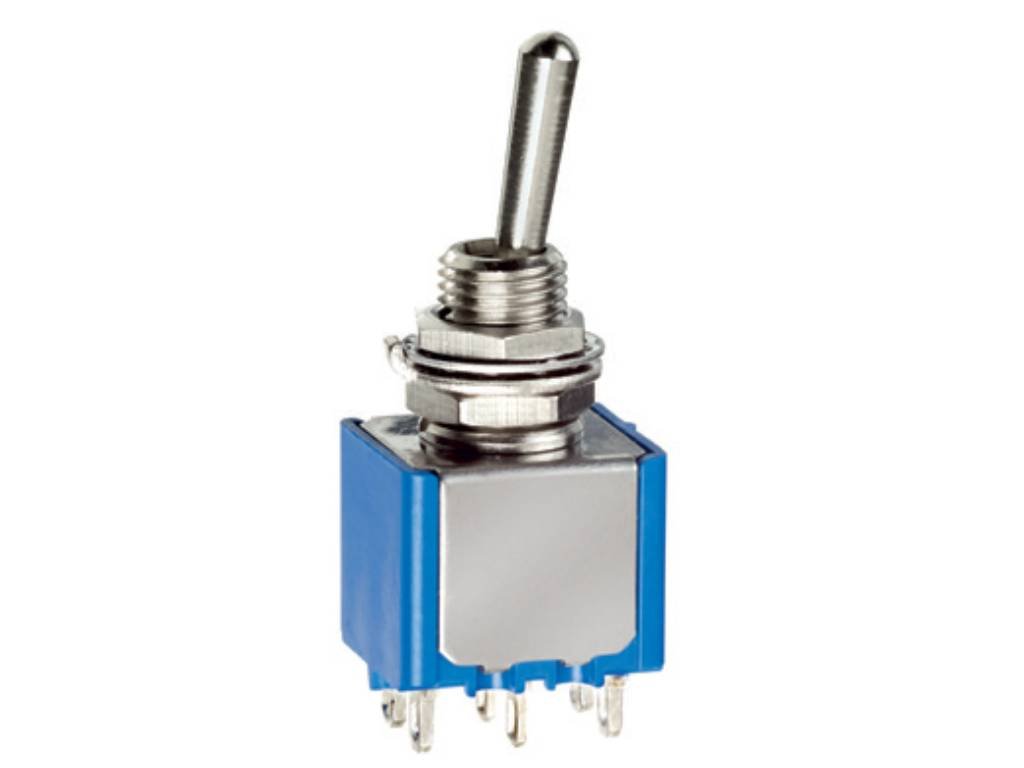 Praktický páčkový přepínač s konfigurací DPDT pro jednoduché ovládání elektrických zařízení.