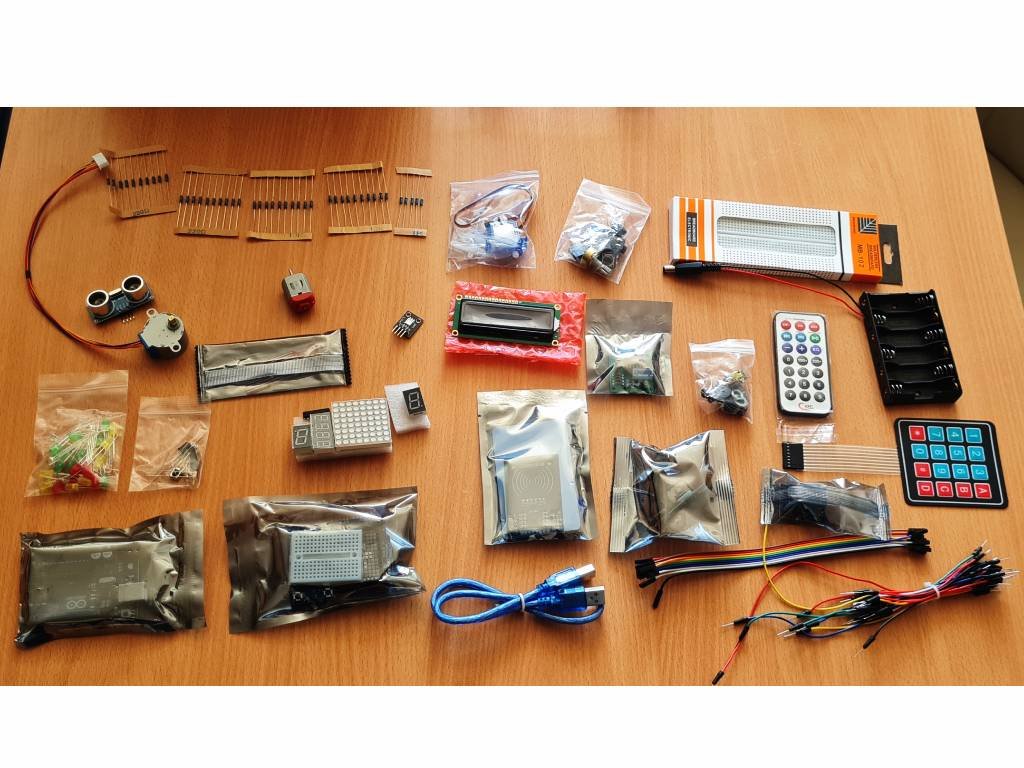 Jednoduchá startovací sada pro seznámení se s vývojovým kitem Arduino. Kit obsahuje různé moduly a komponenty pro různé projekty.
