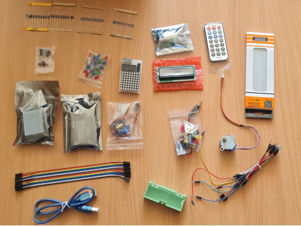 Jednoduchá startovací sada pro seznámení se s vývojovým kitem Arduino. Kit obsahuje různé moduly a komponenty pro různé projekty.