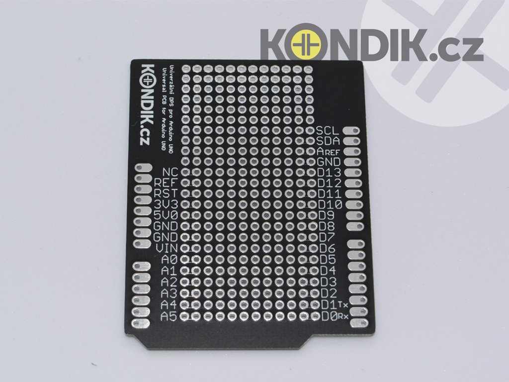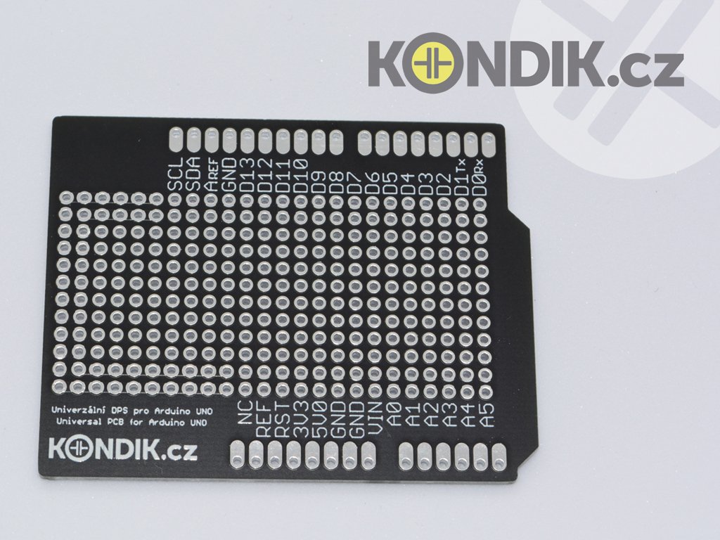 Tento speciálně navržený univerzální DPS usnadňuje výrobu prototypů a zařízení s vývojovými kitmi Arduino UNO a STMicroelectronics Nucleo, které mají Arduino UNO konektory. Jednotlivé piny Arduino UNO konektoru jsou spojeny se 2 piny centrální části. Dvě řady pinů po obvodu jsou spojeny pro rozvod napájení, zatímco ostatní piny v centrální části zůstávají nepropojené.