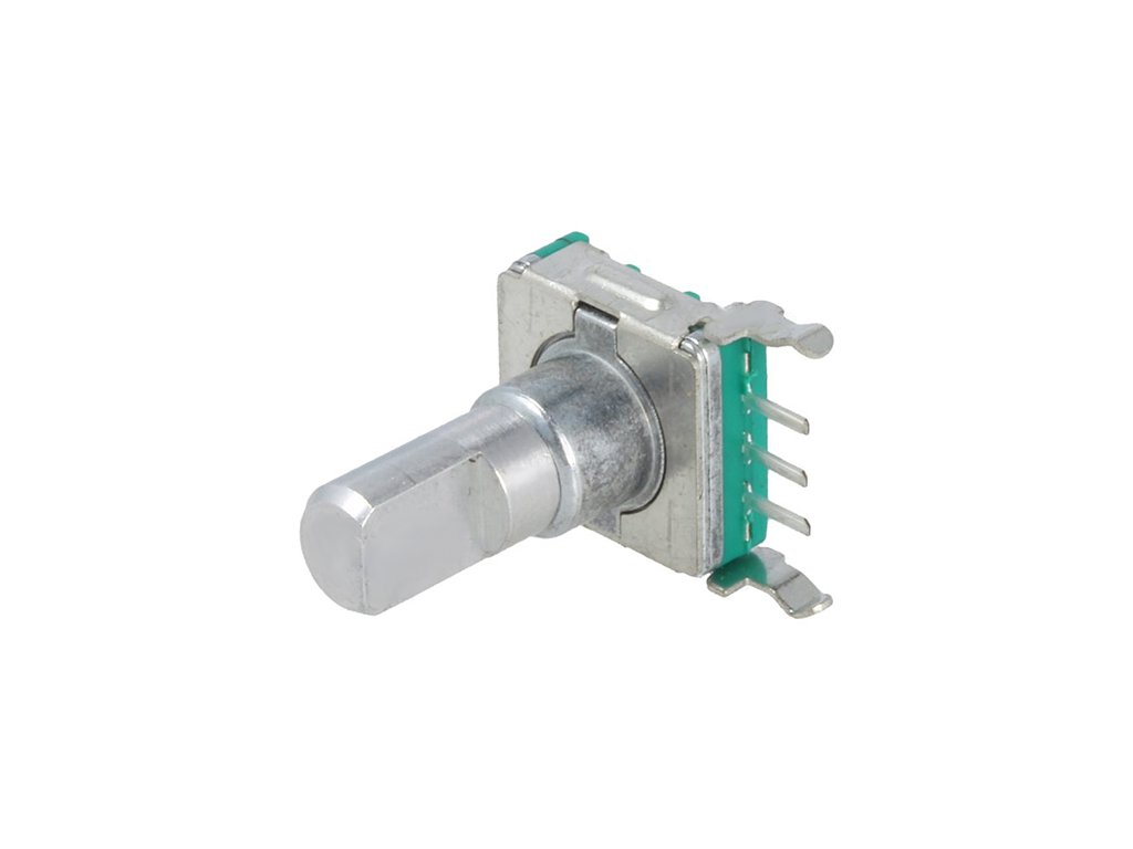Enkodér; inkrementální; rozlišení 20 impulsů/otáčka; 20 poloh; max. pracovní napětí 5V; max. pracovní proud 5mA; dva výstupní signály; životnost až 30 000 cyklů; D hřídel o průměru 6mm a délce 10mm; THT montáž do DPS.
