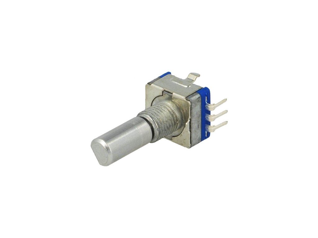 Enkodér; inkrementální; rozlišení 20 impulsů/otáčka; 20 poloh; max. pracovní napětí 5V; max. pracovní proud 5mA; dva výstupní signály + tlačítko; životnost až 30 000 cyklů; D hřídel o průměru 6mm a délce 5,5mm; THT montáž do DPS.
