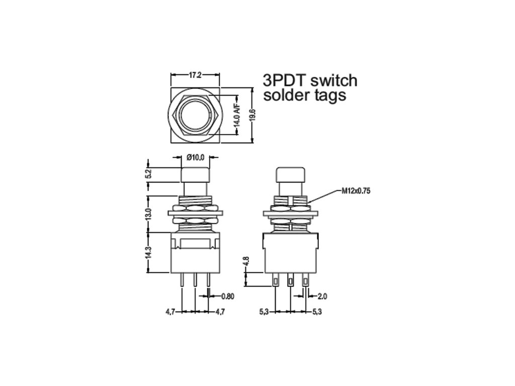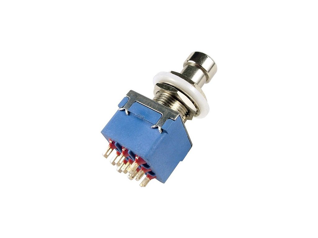 Tento nožní 3PDT přepínač je velmi často používaný při výrobě kytarových efektů, modifikací na True Bypass, výrobě True Bypass boxů a lišt. Výhodou konfigurace 3PDT je možnost ovládat indikační LED nebo další signál.