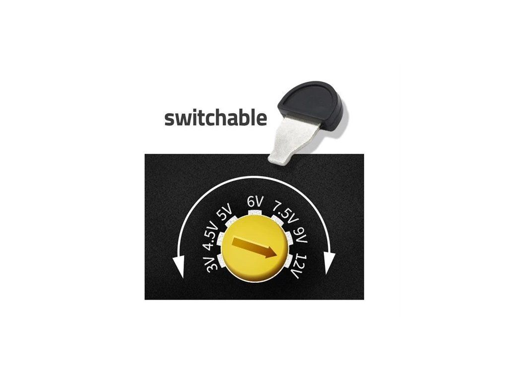 Tento univerzální zdroj je navržen pro napájení digitálních fotoaparátů, přehrávačů CD, MP3, miniaturních vrtaček a dalších zařízení. Změna polarity je možná otočením konektoru, což poskytuje vysokou flexibilitu použití.