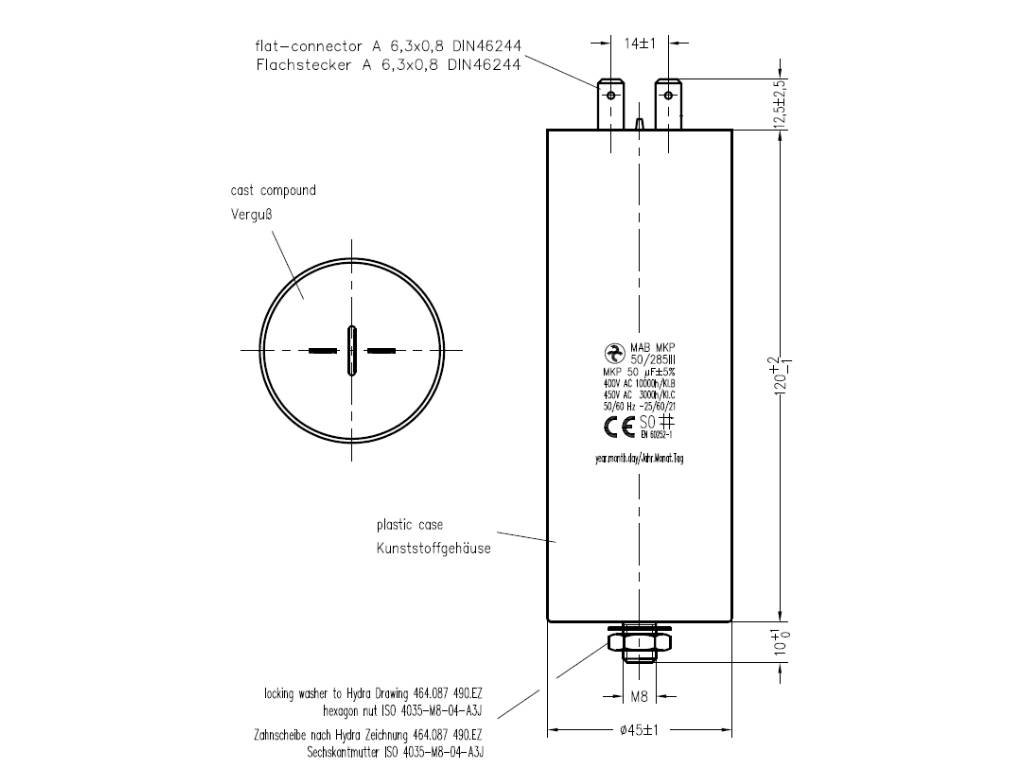 Hydra MAB MKP 50/285III/E3 kondenzátor motorový 50uF