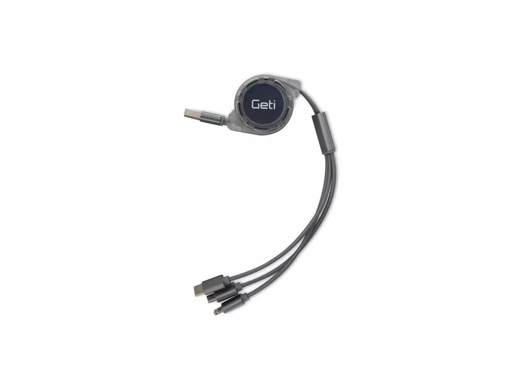 Geti GCU04 stříbrný samonavíjecí USB kabel 3v1