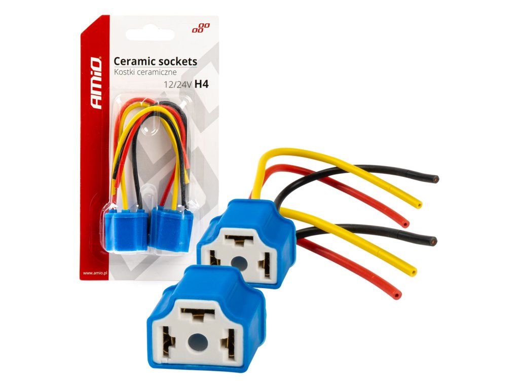 - Koncovkaka je vyrobena z keramického materiálu, který je odolný vůči vysokým teplotám. Má pevný izolační kryt. Montážní bloky s vodiči pro halogenové žárovky H4 (pro vozidla s napájením 12/24V).