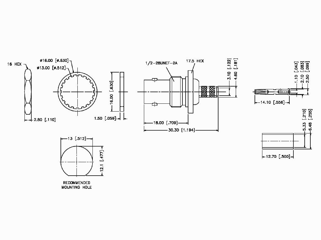 Konektor BNC zásuvka 112202 je přímý typ konektoru s impedancí 50 Ohm, určený pro montáž do panelu. Tento konektor je navržen pro použití s koaxiálními kabely typu RG58 nebo RG141 a zvládá přenos signálů s frekvencí až do 4 GHz. Montáž konektoru se provádí krimpováním, což umožňuje rychlou a pevnou instalaci. Konektor se vyznačuje vysokou trvanlivostí, s minimálně 500 mechanickými cykly připojení a odpojení, což jej činí ideálním pro opakované používání v náročných aplikacích.