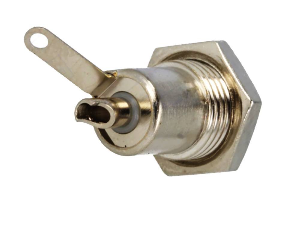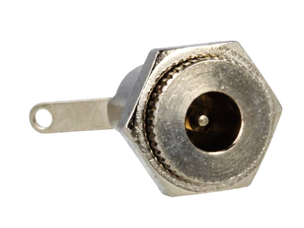 Konektor DC 5,5/2,1 vidlice kovová do panelu je ideální pro aplikace, které vyžadují odolné a spolehlivé připojení napájení, s montáží přímo na panel nebo desku plošného spoje.