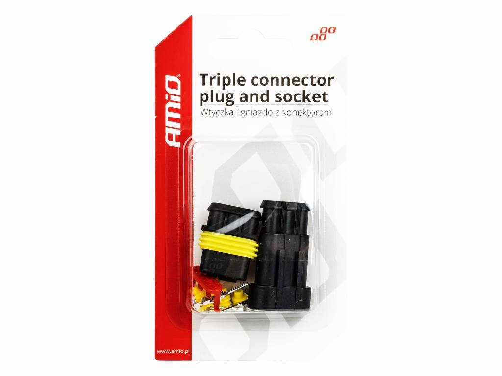 AMiO 03519 sada voděodolného konektoru Superseal 1.5, 3-pin (samec+samice)