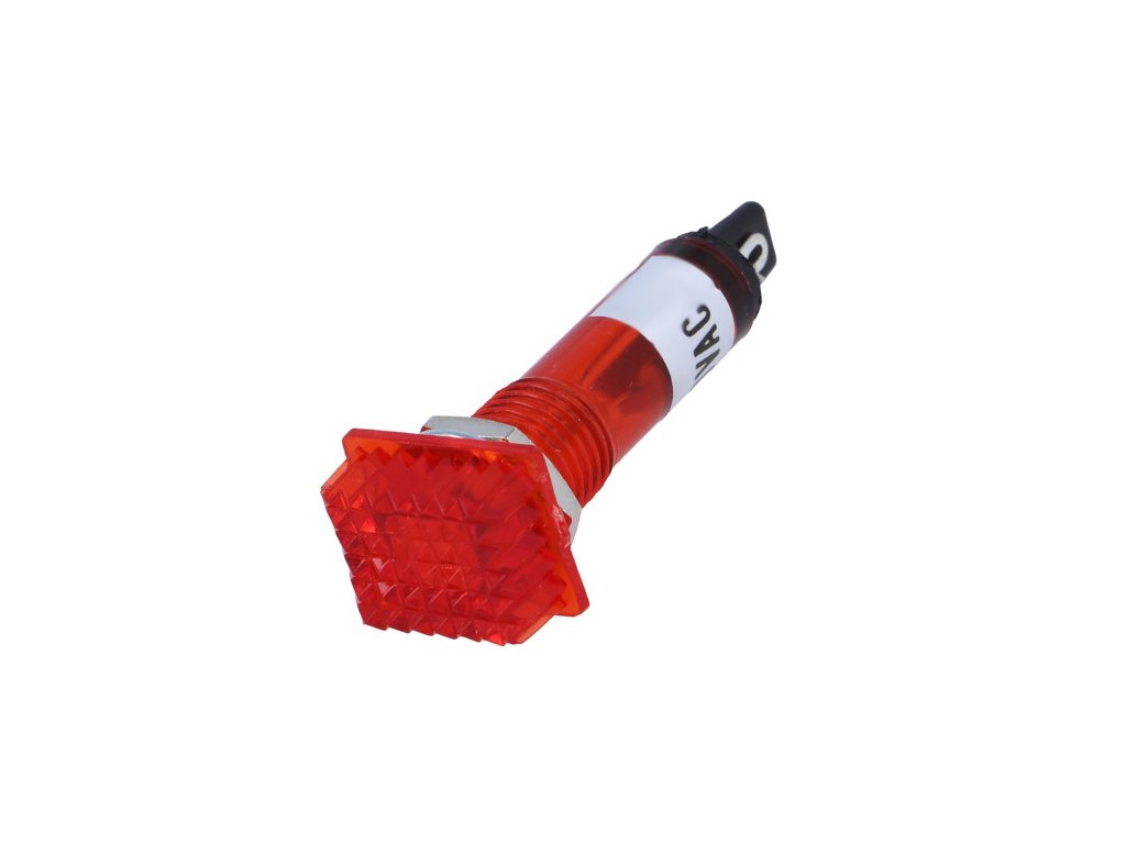 Kontrolka s doutnavkou; plochá čtvercová; červená; 230VAC; průměr 10mm; vývody pájecí.