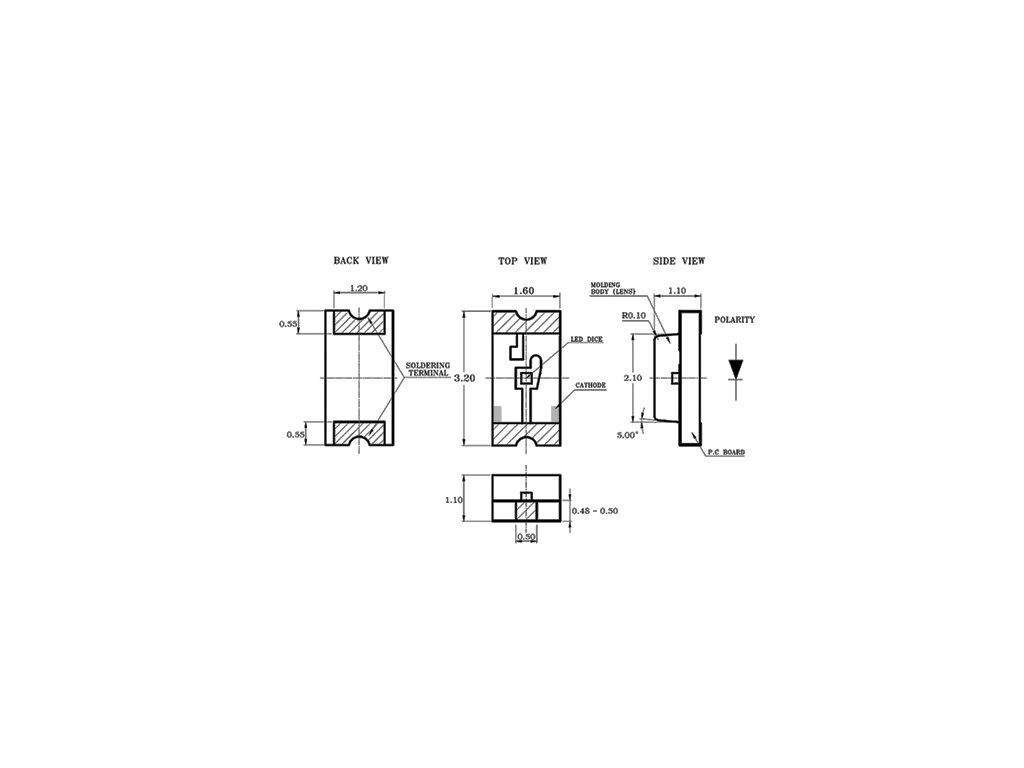 LED dioda v pouzdru SMD 1206Barva žlutá se svítivostí až 130 mcdDoporučené napětí 2,2 V při 20 mA