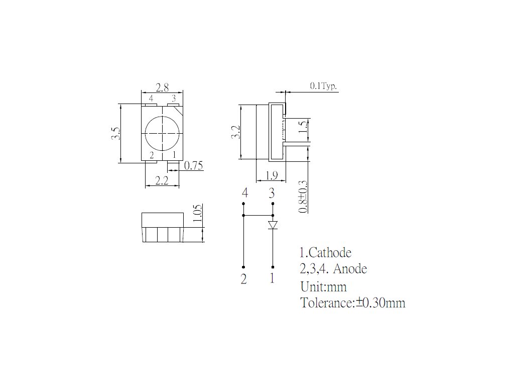 Červená LED dioda v pouzdru SMD 3528Svítivost: až 1800 mcdNapájení: 2,3 V při 50 mA