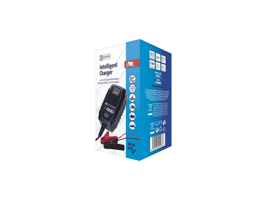 Inteligentní nabíječka určená pro autobaterie, motobaterie a záložní akumulátory. Tato nabíječka je řízena pomocí interního mikrořadiče (MCU), který diagnostikuje stav akumulátoru a určuje vhodný režim a nabíjecí napětí.
