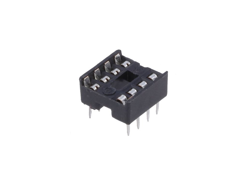 Patice na pouzdra DIP; 8 pinů; rozteč řad 7,62mm; rozteč pinů 2,54mm; montáž do DPS; THT.