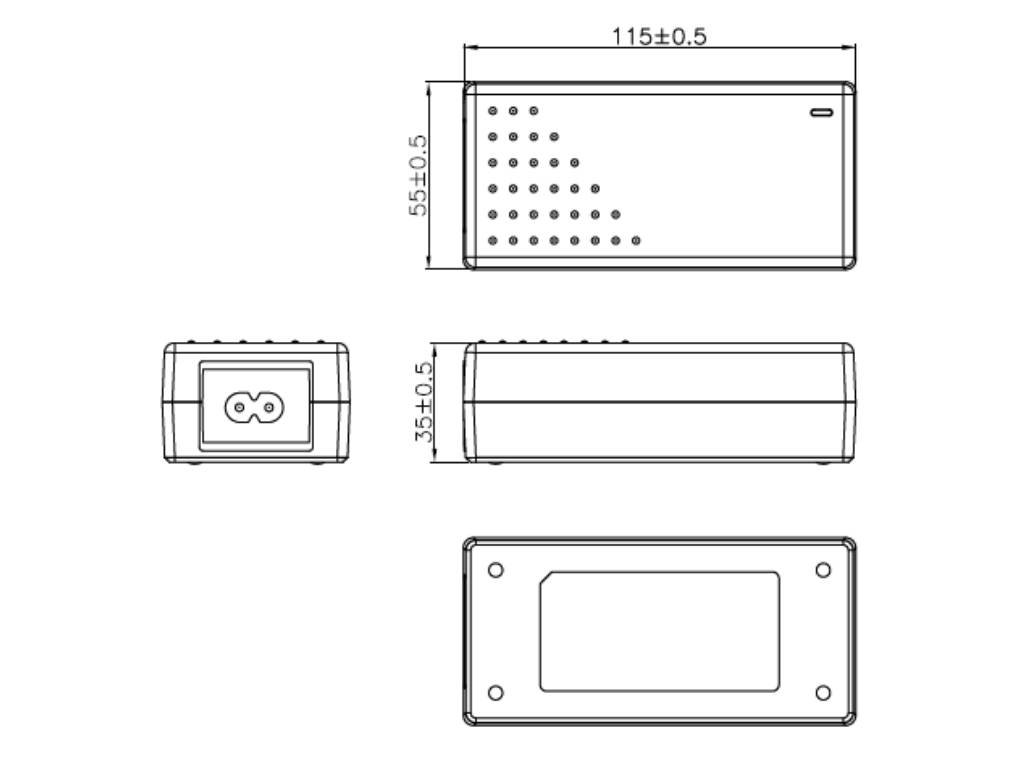- Výstupní konektor: 5,5/2,1mm (plus uprostřed)
