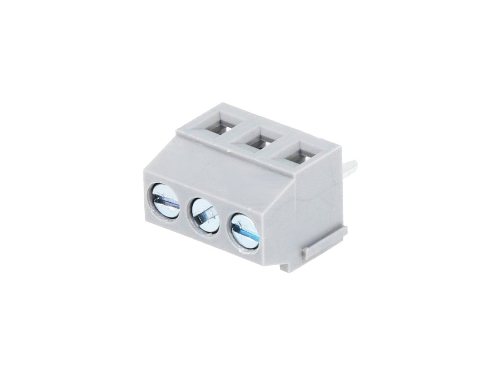 Svorkovnice DG381-3.5-03P šedá je svorkovnice do plošného spoje s roztečí 3,5mm a 3 póly. Podporuje maximální napětí 150V a proud až 10A, s maximálním průřezem vodiče 1,5mm². Je vybavena šroubovými svorkami a umožňuje spojování do sestav. Rozměry svorkovnice jsou 10,5x8,6x7,4mm a má šedou barvu. Svorkovnice má úhlovou orientaci 90° a je určena pro montáž pomocí THT (Through-Hole Technology). Tento typ svorkovnice je ideální pro aplikace, které vyžadují efektivní připojení s menším počtem pólů a vodičů.