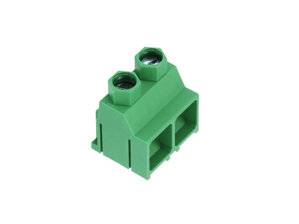 Svorkovnice DG638-9.52-02P zelená je úhlová svorkovnice do DPS (plošného spoje) s roztečí 9,52mm a 2 póly. Podporuje maximální napětí 1000V a maximální proud až 32A. Svorka má rozměry 19x21,5x16mm a je v zelené barvě. Tato svorkovnice je určena pro montáž do plošného spoje s THT (Through-Hole Technology) a má úhlovou orientaci 90°.
