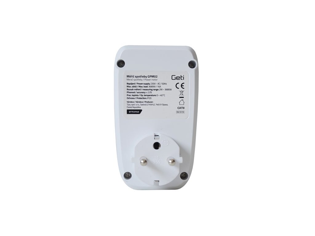 Digitální měřič spotřeby elektrické energie Geti GPM02 je určen pro měření a monitorování spotřeby elektrických zařízení v domácnostech a kancelářích. Díky přehlednému LCD displeji a jednoduchému ovládání poskytuje snadný přístup k informacím o okamžité i celkové spotřebě a nákladech na energii.
